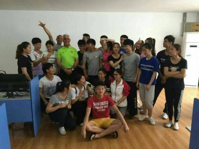 热情高涨的同学们也纷纷用英文进行了自我介绍,很多同学还为皮特沃展示了自己的专项特长,如太极拳、南拳、长拳、武当拳、散打、舞蹈等,使得皮特沃不断夸赞学生们具有运动天赋。