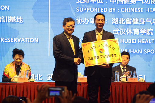 (国际健身气功联合会为武当山旅游股份有限公司授予武当养生国际培训基地牌匾)