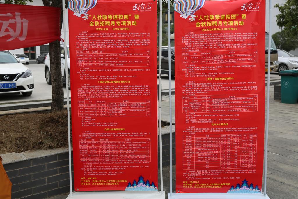 2018年10月15日上午,由武当山人社局指定培训单位和武当山天天职业技能培训学校联合举办的“人社政策进校园”暨金秋招聘月专项活动在武当山国际武术学院开展。