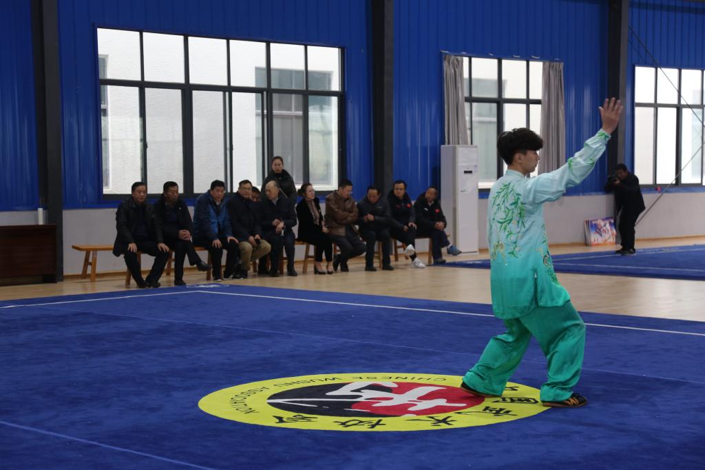 霍震寰先生分别对我院篮球馆、武术训练馆、综合训练馆进行了视察,并认真观看了我院武术代表队的训练。