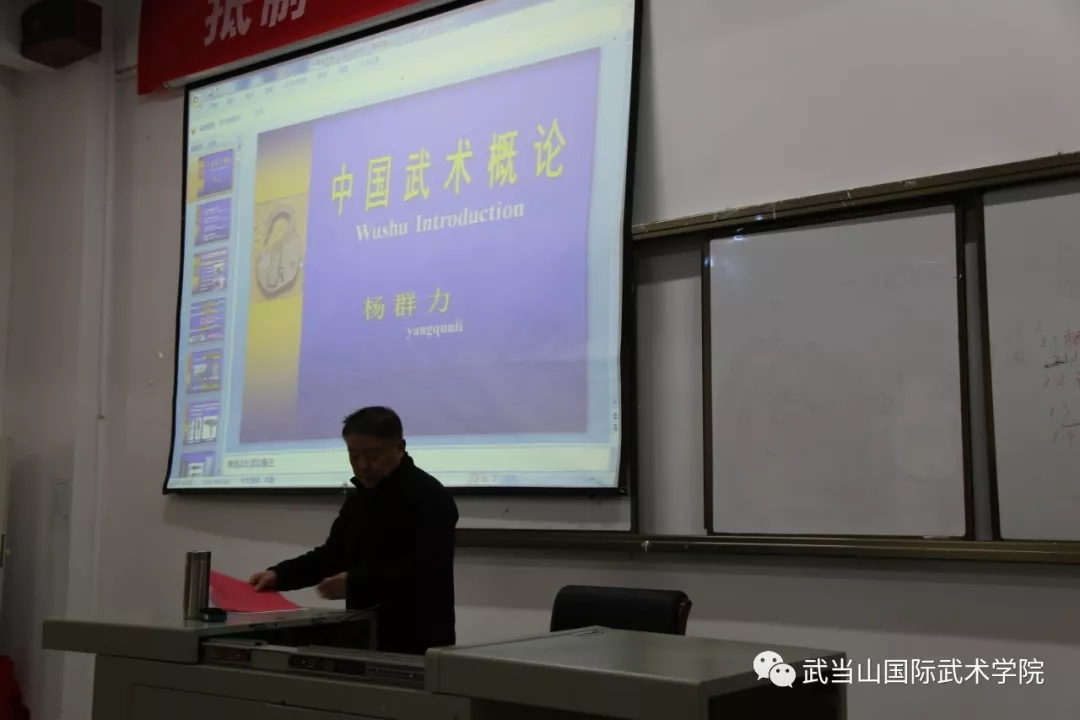 武当山国际武术学院建校五年以来,凝聚武当武术人才,完成武当武术“两拳一械”标准化,编著和发行了《武当武术》校本教材,构建从科研到教学、从教师培训到学生学习、从专修到普修的横纵一体全方位专业化、个性化的武当武术传承与培养体系,为弘扬和传承武当山武术作出了积极的贡献。