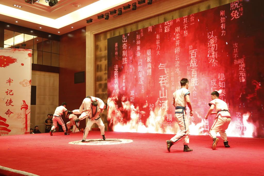 踢打摔拿显身手,龙腾虎跃迎新年。顶摔、背摔、切摔……一个个动作干净利落。用奋斗和拼搏谱写时代华章!将中华武术精神表现的淋漓尽致!