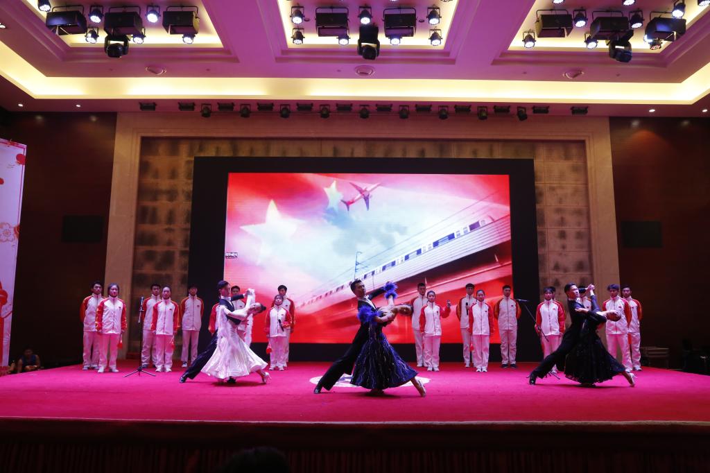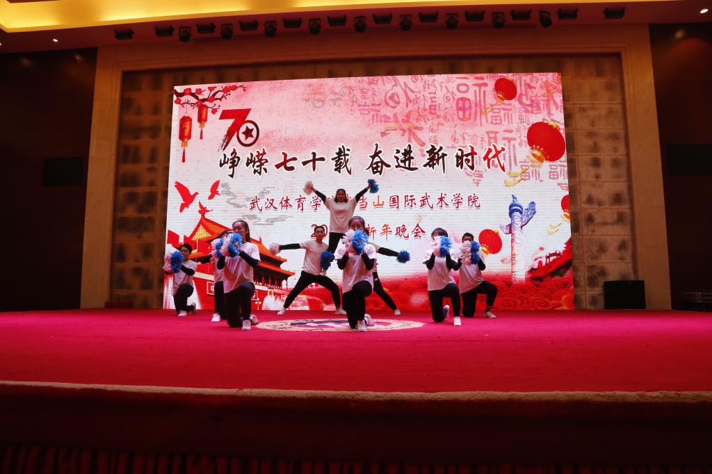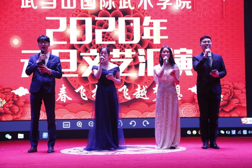 12月31日下午,武汉体育学院武当山国际武术学院“峥嵘七十载,奋进新时代”2020新年晚会在武当山建国饭店盛大开幕。在这个用红色情怀和温馨筑就的圣地,在这个灯光和掌声交融的舞台,在这个笑声与歌声汇聚在一起的夜晚,全院师生欢聚一堂,共同回顾新中国成立70年来的辉煌历程,共同祝福伟大祖国的美好前程,