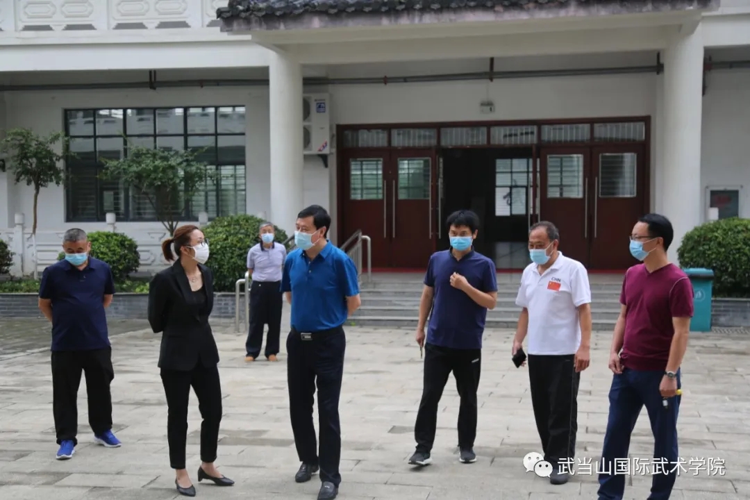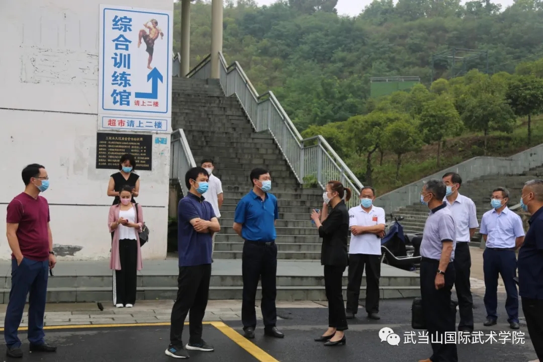武当山特区宣传部长周义波,教育局长毛伍生、副局长崔星,武术局局长韩继斌,武当山国际武术学院常务副理事长祝三梅,学院领导王广田、王飞、王根法、张德新、杨群力等陪同调研。