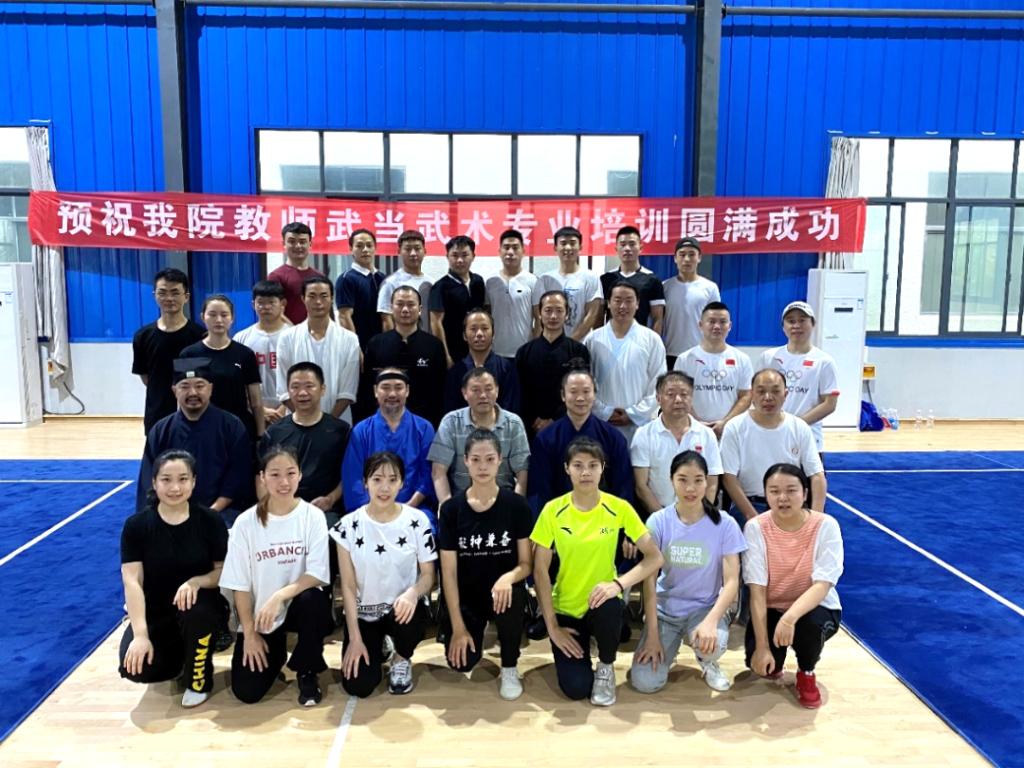 武汉体育学院武当山国际武术学院整合武当武术、教育领域优质资源,聘请了十堰市张三丰历史文化研究会秘书长、非遗项目《张三丰传说》湖北省代表性传承人郭旭阳,十堰市武当三丰武术学校校长袁理敏,武当山道家无极功夫馆馆长陈理圣,武当山理阳内家功夫馆馆长田理阳等传承人为学院26名青年教师进行为期45天“理论+技术+教学”的培训。7月11日对所有青年教师掌握的五形养身功、武当三十六式秘传太极拳、六字真言、通经活骨功和武当逍遥掌功法进行考核,考试合格者获得由国家武术研究院武当武术研究中心颁发的合格证书。