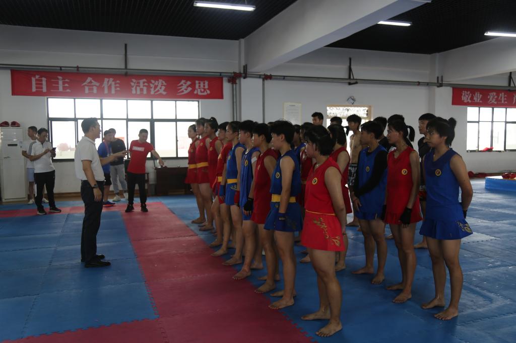 在散打女队集训馆内,水兵与队员们亲切交谈,详细了解了我省散打女队运动员的训练、生活、食宿等情况,并鼓励队员们要紧盯目标、刻苦训练、打牢基础、顽强拼搏,守住强项、恶补短板,特别是要强化体能训练,扎实落实好“三补”,全力备战冲刺全运会,勇夺奖牌为省添彩。