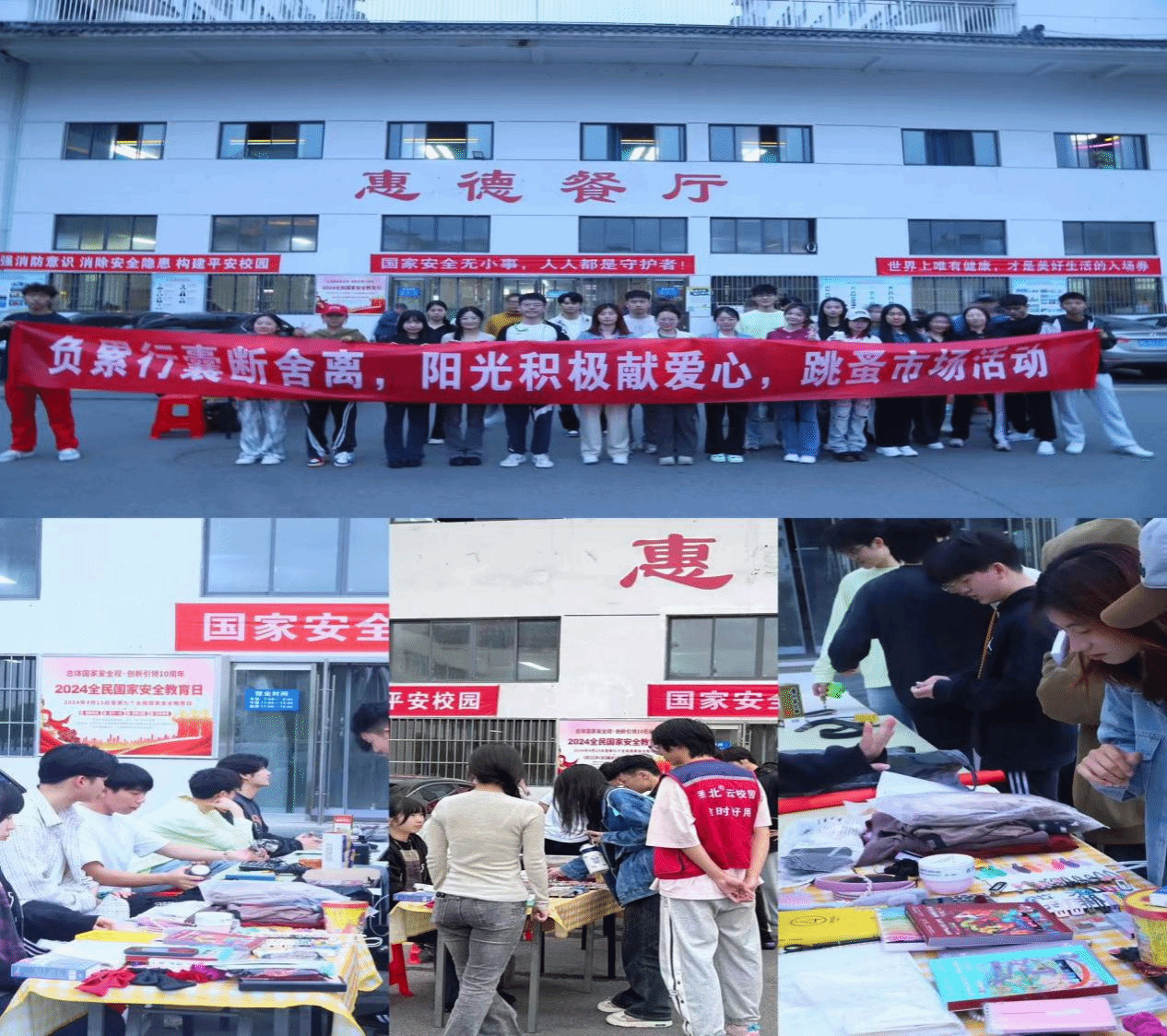 4月19日,正值春光明媚之际,我院在食堂门口开展了一场别开生面的“跳蚤市场”活动。这次活动是一次心灵与心灵之间的碰撞,不仅培养了学生的社交互动能力,同时也拓展了学生的人际关系,对心理健康有着积极的影响。