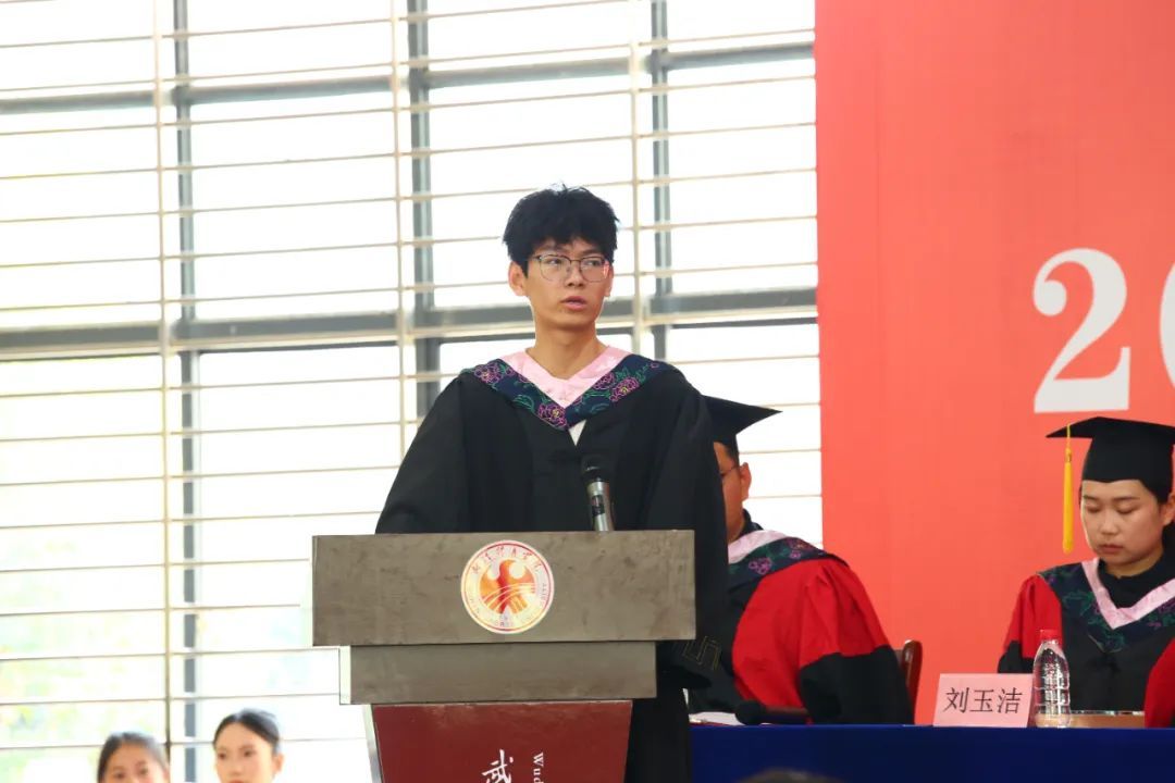 谭明表达了对学校和学院教育培养的感谢之情,分享了自己在学院求学的蜕变感悟。他祝福同学们毕业后更有勇气、更有信心去面对未知的挑战。