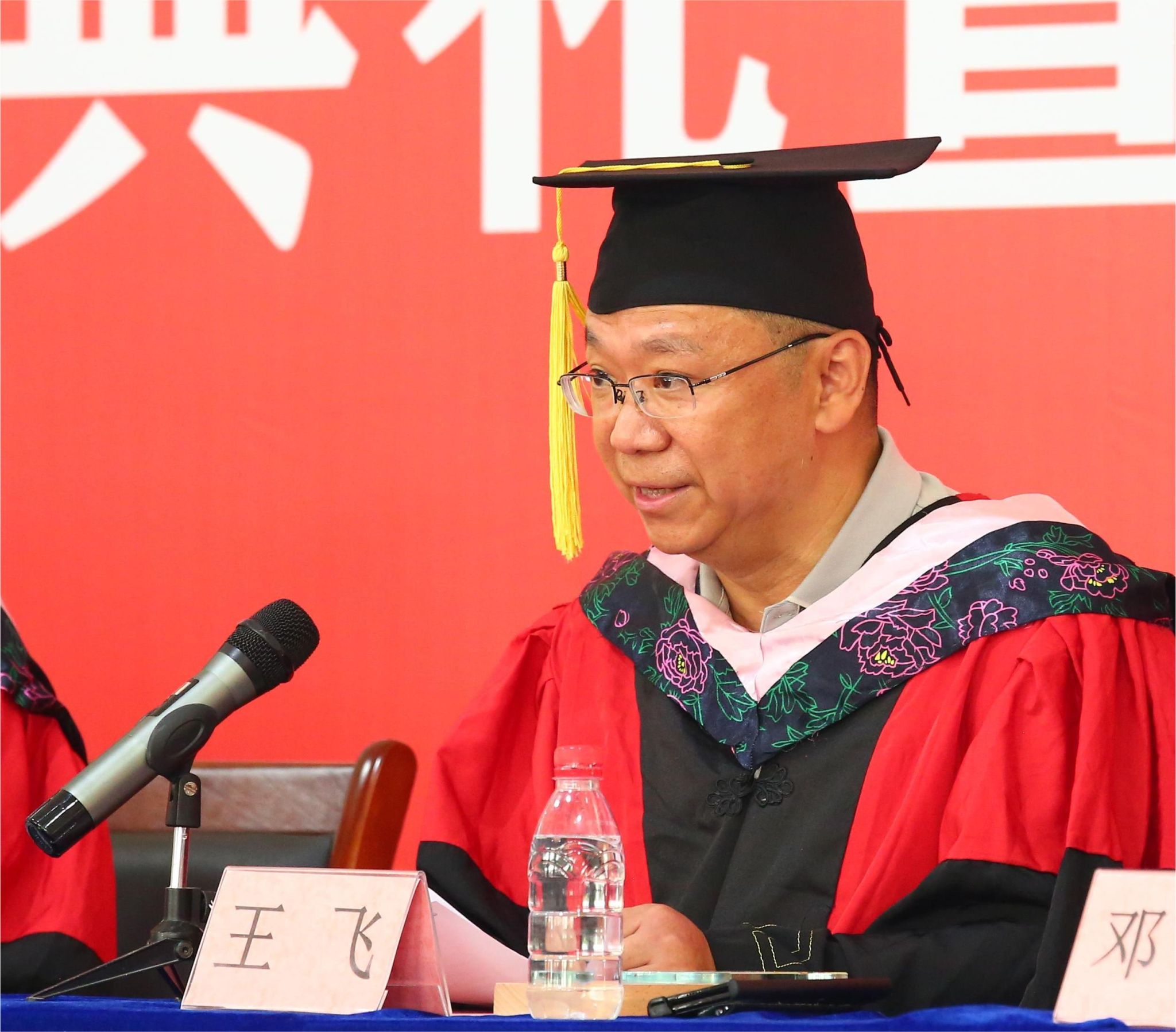 王飞代表学院全体师生,向即将走出校门、踏上新征程的毕业生表示最热烈的祝贺。他提出三点希望:一是强化担当,自立自强。二是眼里有光,无惧风浪。三是坚持学习,踔厉奋发。