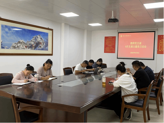 9月9日,教师党支部在行政楼209会议室开展了以“深入学习贯彻党的二十届三中全会精神,以改革实效推动学校高质量发展”为主题的9月支部主题党日活动暨学习贯彻党的二十届三中全会精神宣讲会。会议由教师党支部书记谢鹏主持。