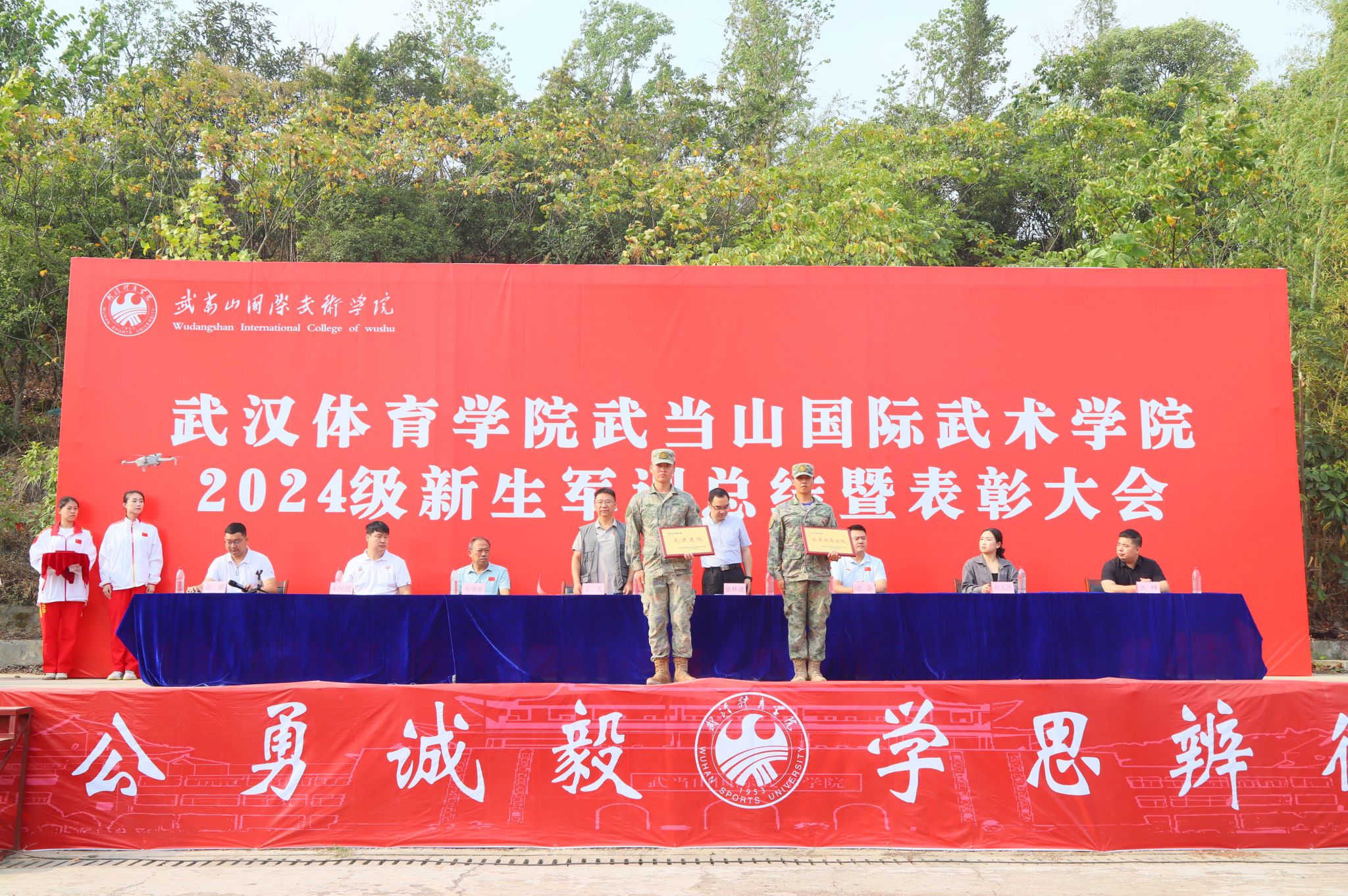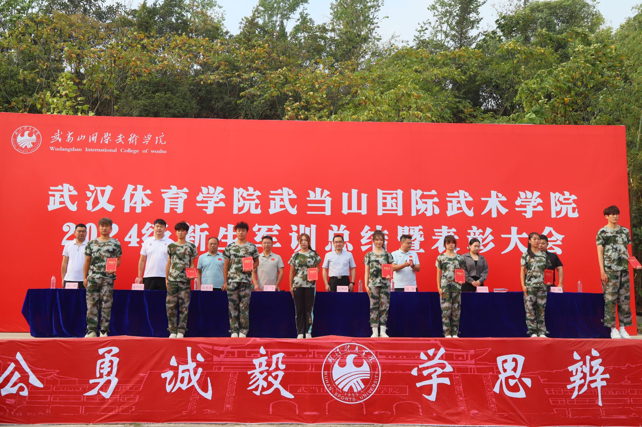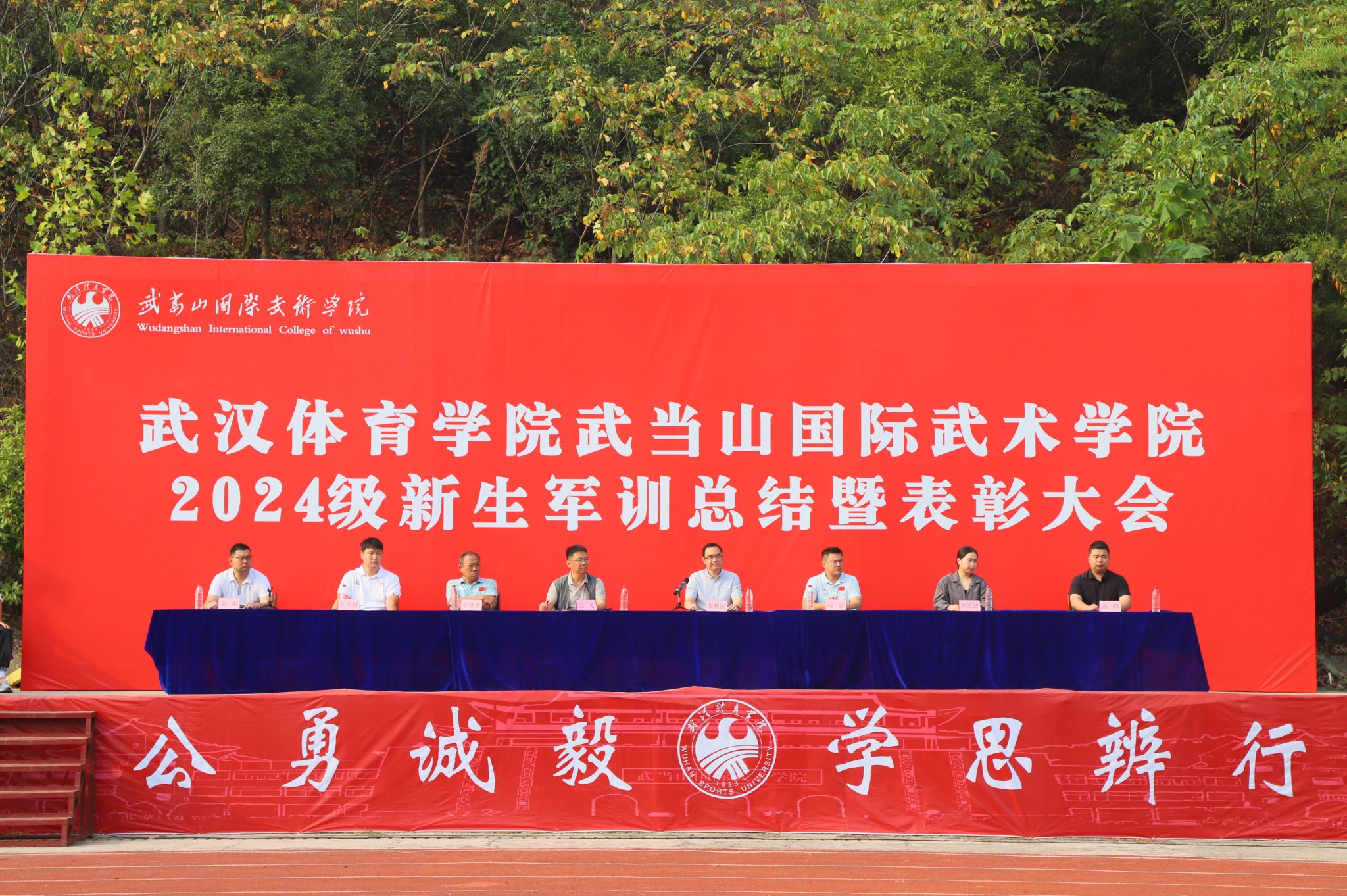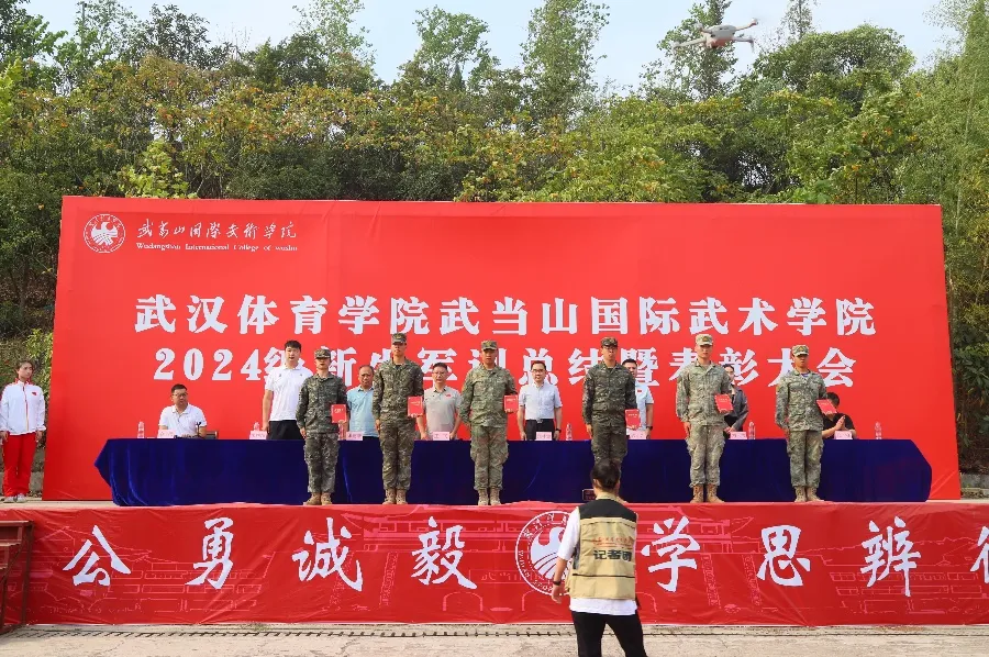 9月29日上午,学院2024级新生军训总结暨表彰大会在田径场隆重举行。学院院长、党委书记王飞,党委副书记、副院长张林波,副院长张德新,院办、武术系、艺术系、运动训练系负责人及2024级全体新生参加大会。大会由学工办主任金梁主持。
