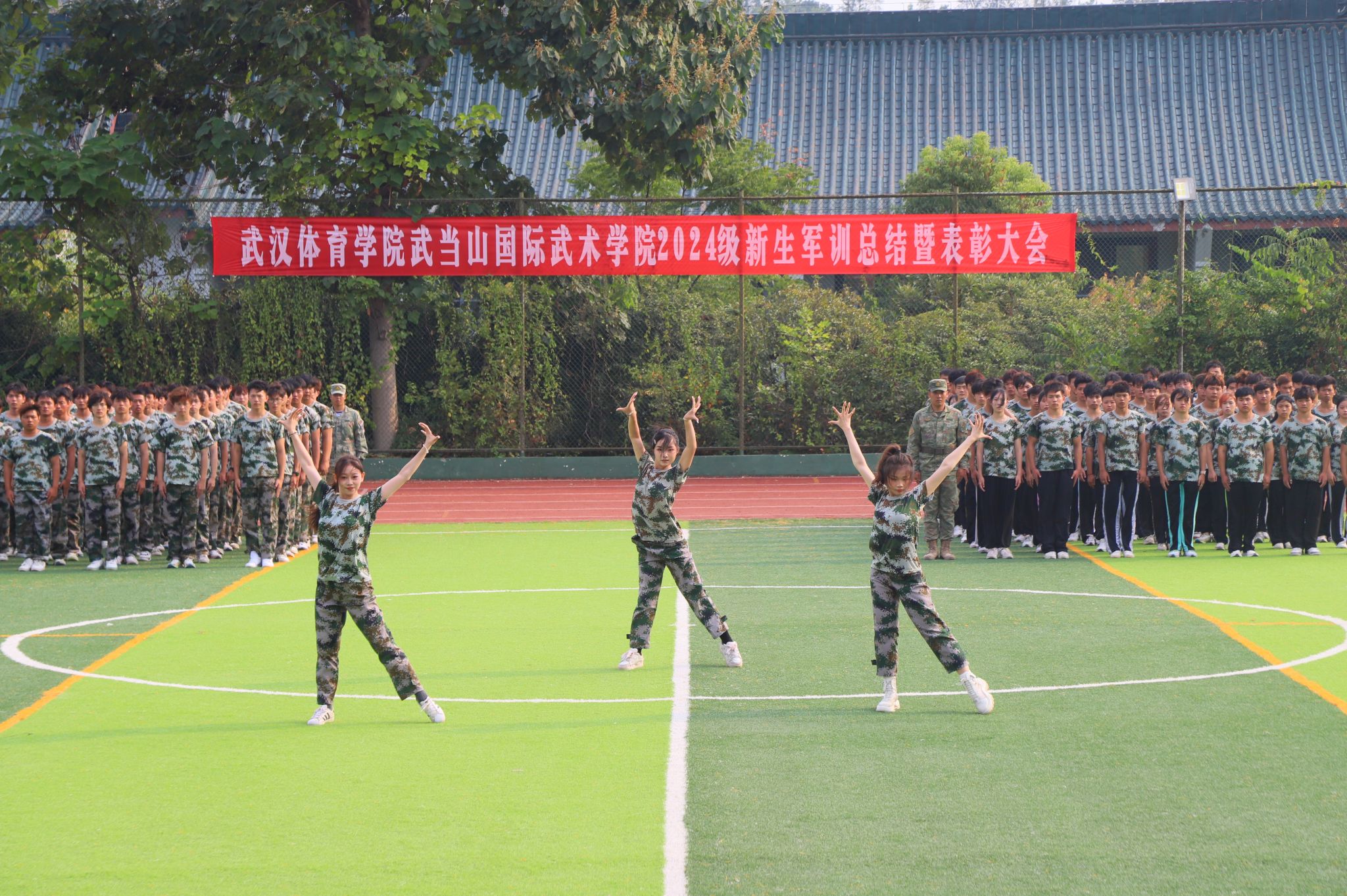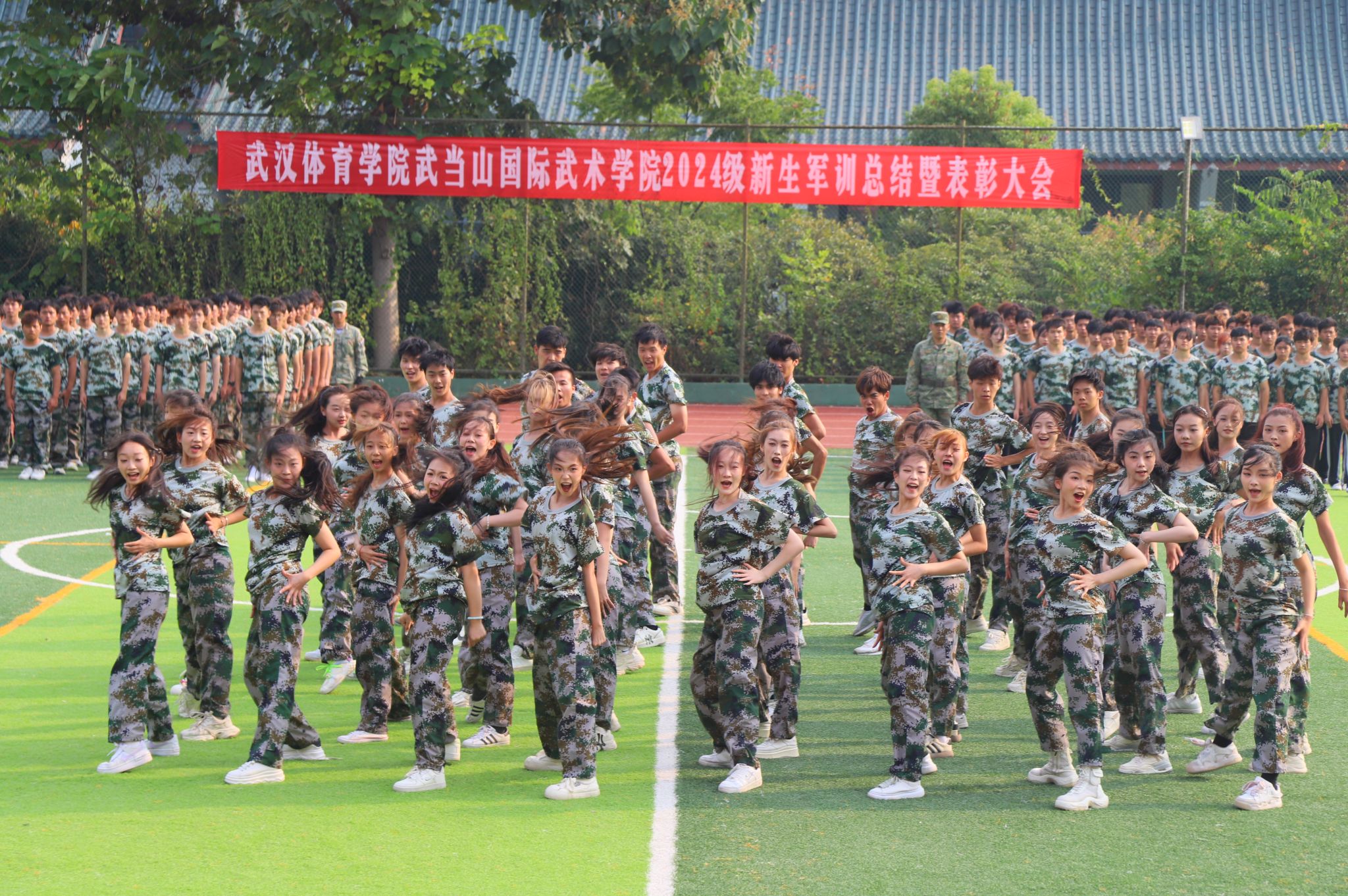 以奋斗之姿,谱无悔青春。全体2024级新生身着迷彩服,精神饱满,迈着整齐坚定的步伐,喊着嘹亮的口号,走过主席台接受检阅,展现武体学子的朝气蓬勃与青春活力。这不仅是对同学们刻苦训练成果的一次全面展示,更是对他们坚强的意志,顽强的精神的一次深刻检验。
