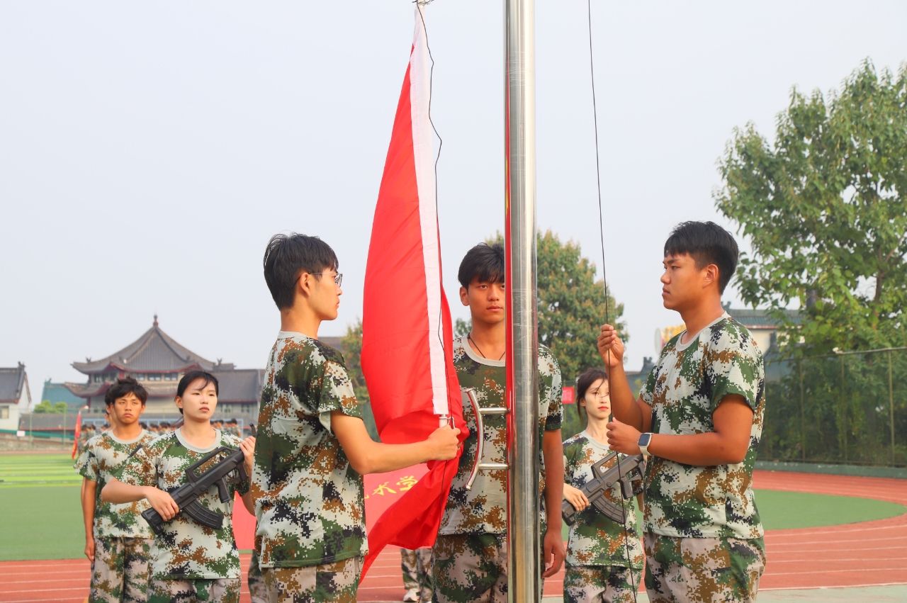 大会在庄严的升旗仪式中拉开序幕,国旗护卫队迈着整齐有力的步伐走向升旗台,全体师生和教官向国旗行注目礼,表达对祖国的无限忠诚与热爱。