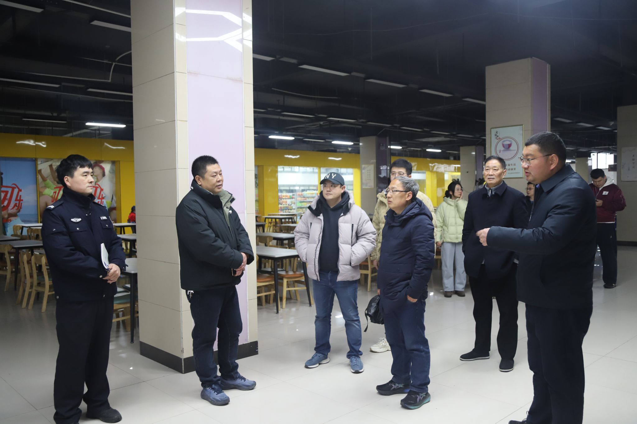 检查组一行先后深入武术训练馆、散打训练馆、图书馆、教学楼、训练楼、教师公寓、学生公寓以及食堂等重点区域,对场馆设施安全、教学设备运行、消防器材配备、食品卫生安全、宿舍生活环境以及水电供应保障等方面情况进行了全面检查。
